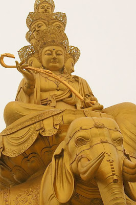 In the hotel lobby. 普贤菩萨, this is what we will see on top of the mountain later.